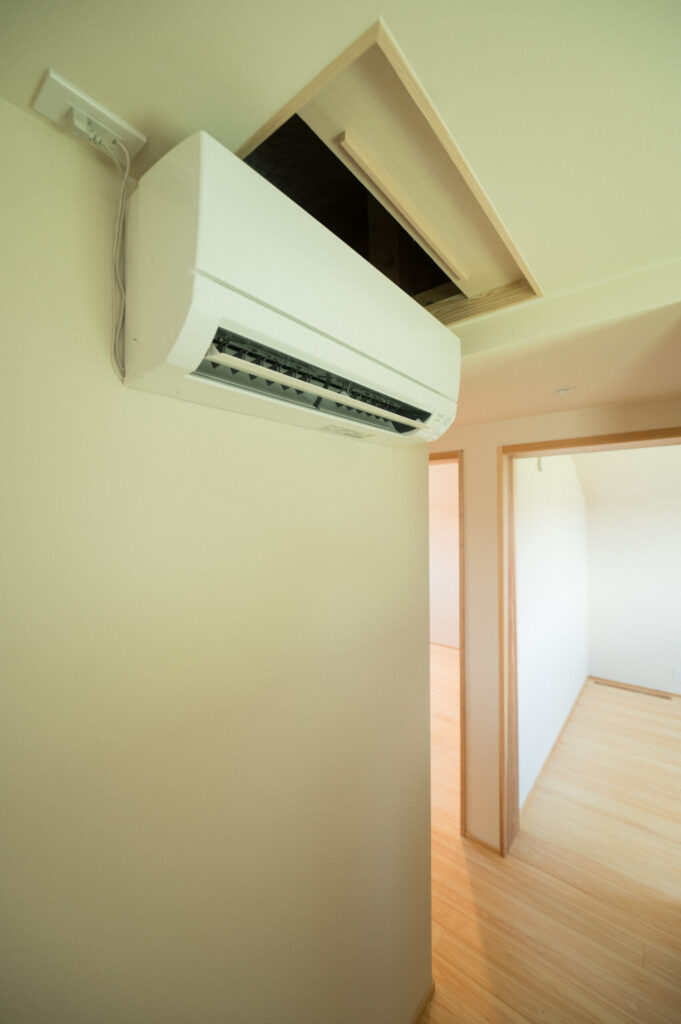 夏場は2階に設置したエアコン1台で家全体を冷やし、冬場は床下エアコン1台でやわらかく温める。