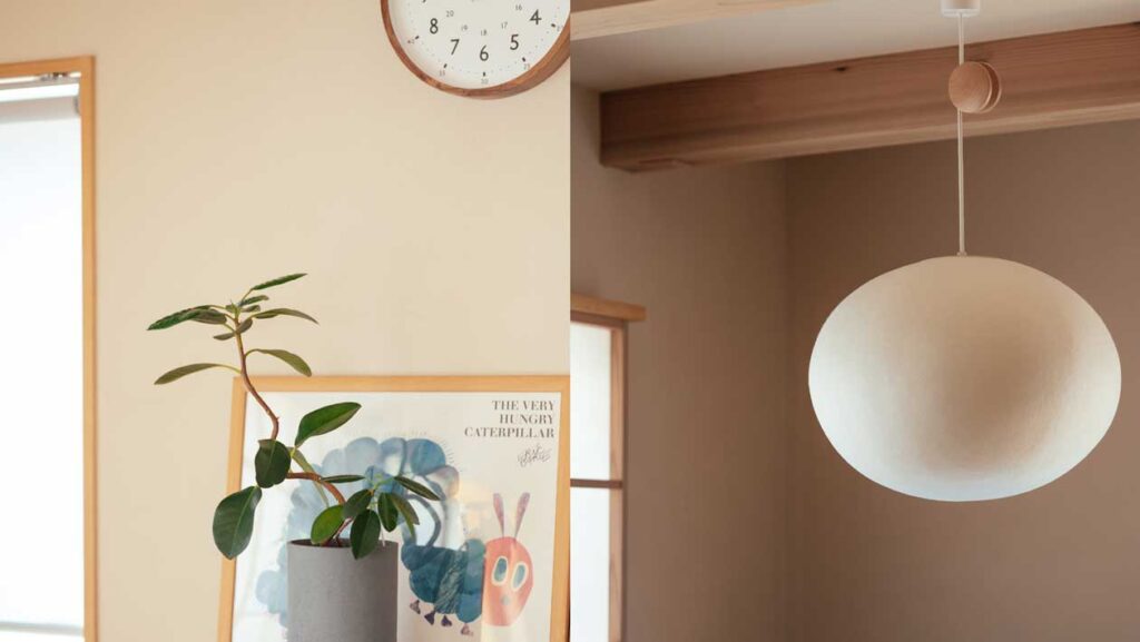 ご主人の趣味はバスケ。奥さまももともとバスケットやスノーボートなどのアクティブな活動もお好 きだった。今は、うつわをつくったり、雑貨を探したりするのも好きだそうだ。飾られたライトや小物から、 もの選びのセンスの良さが伝わってくる。