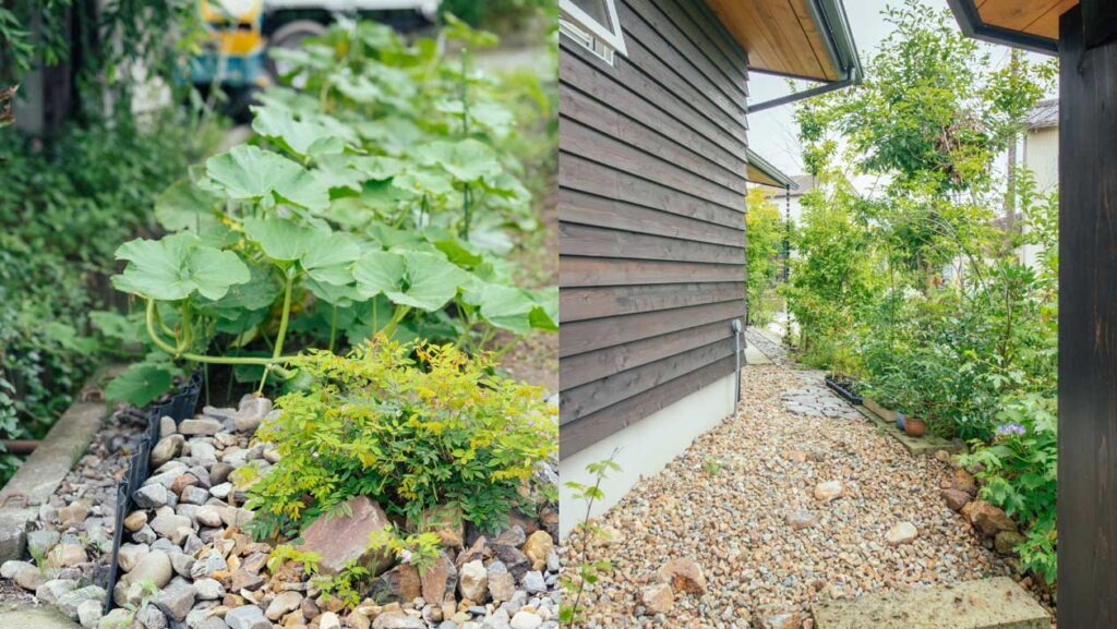 ご主人の趣味は登山と山野草、畑と自然に関するものが多い。一人で没頭できるものが好きだそうで、将来は 盆栽も始めてみたいと話す。外構もご自身で庭に石を追加したり、植栽も増やしたりと、自分たちの手でよりよい庭づくりを進めている。